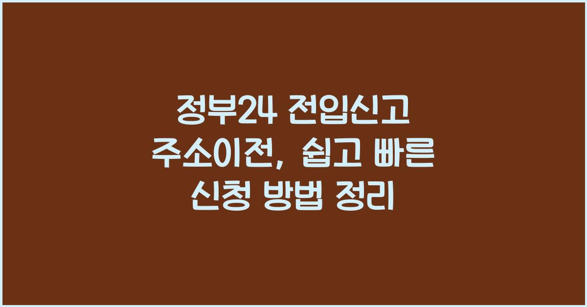 정부24 전입신고 주소이전, 시작하기이사 후에 꼭 알아야 할 것이 전입신고죠! 정부24 전입신고 주소이전은 너무나 간편하게 이루어질 수 있습니다. 이 과정을 통해 새로운 주소지를 공적 기록에 반영하고 여러 가지 행정절차를 간소화할 수 있는데요. 정부24 플랫폼은 사용자 친화적으로 구성되어 있어 누구나 쉽게 접근할 수 있습니다. 이런 이유로 다각적인 정보를 한번에 확인할 수 있어 매우 유용하죠.정부24 전입신고 주소이전 더 알아보기전입신고를 간단히 알아보면, 새로운 주소지로 이사한 이후에 관할 주민센터에 신고하는 과정을 말해요. 이 과정은 내가 사는 지역을 공적으로 인정받기 위해 꼭 필요하답니다. 게다가 인터넷을 통해서도 신청할 수 있어 더욱 편리해요! 정부24 전입신고 주소이전의 첫 단계가 바로 이 인터..